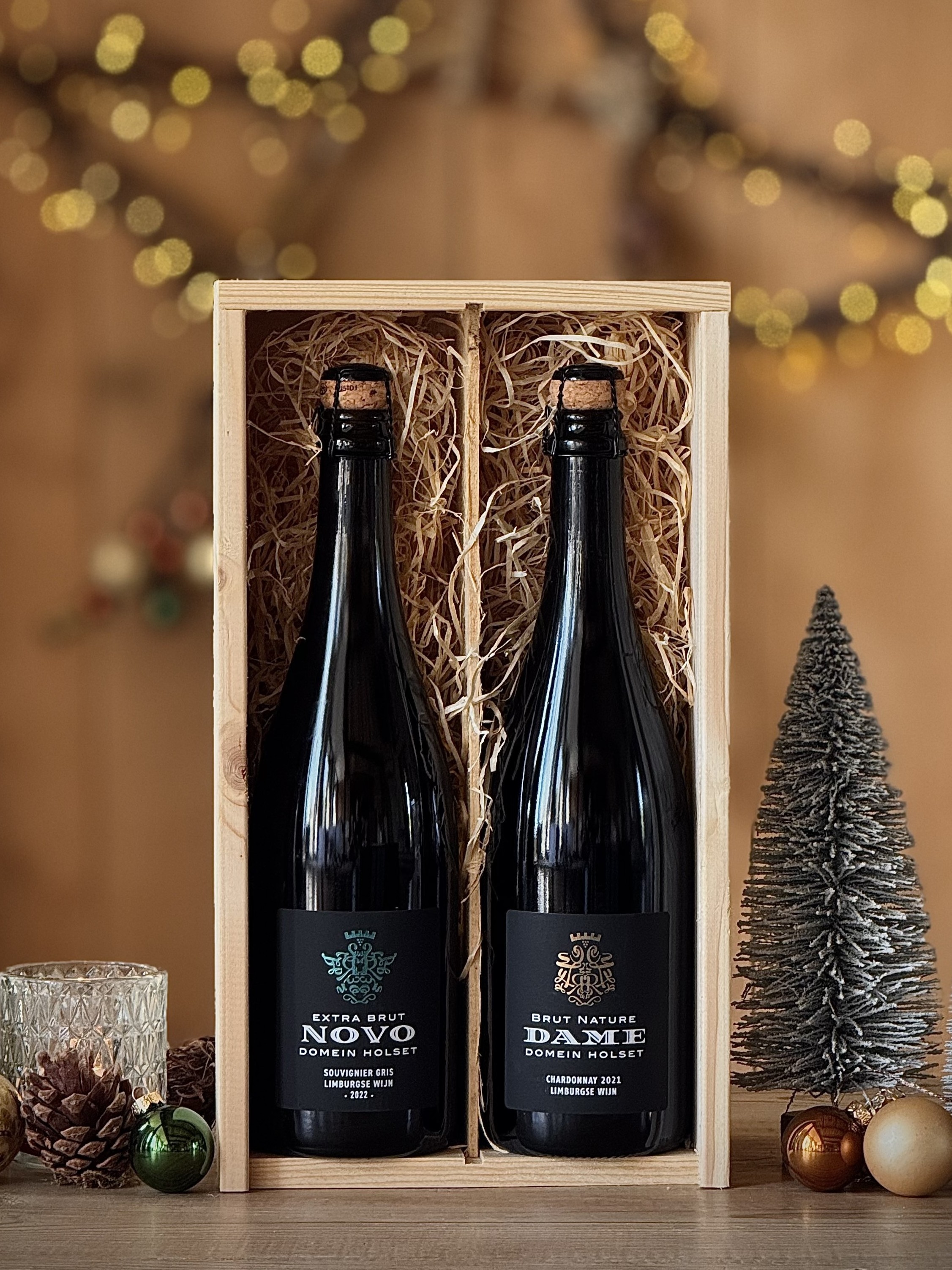 Wil je jouw zakenrelaties en medewerkers deze kerst verrassen met een bijzonder geschenk? Met de sprankelende mousserende wijnen van Domein Holset geef je een stijlvol, persoonlijk en feestelijk cadeau. De wijnen worden duurzaam gemaakt in het Zuid-Limburgse Heuvelland en passen perfect bij de trend van bewust genieten. Een mooie verpakking en een kaartje met jouw persoonlijke boodschap en logo zorgen voor een onvergetelijk moment!